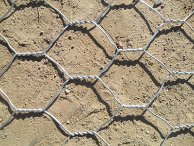 (7)重型拧花网是采用低碳钢丝镀锌大丝号编织,钢丝的抗拉强度不少于38kg/m2,钢丝的直径可达 2.0mm-3.2mm,钢丝表面通常还采用热镀锌保护,镀锌保护层的厚度可根据客户的要求制做,镀锌量大可达到300g/m2。